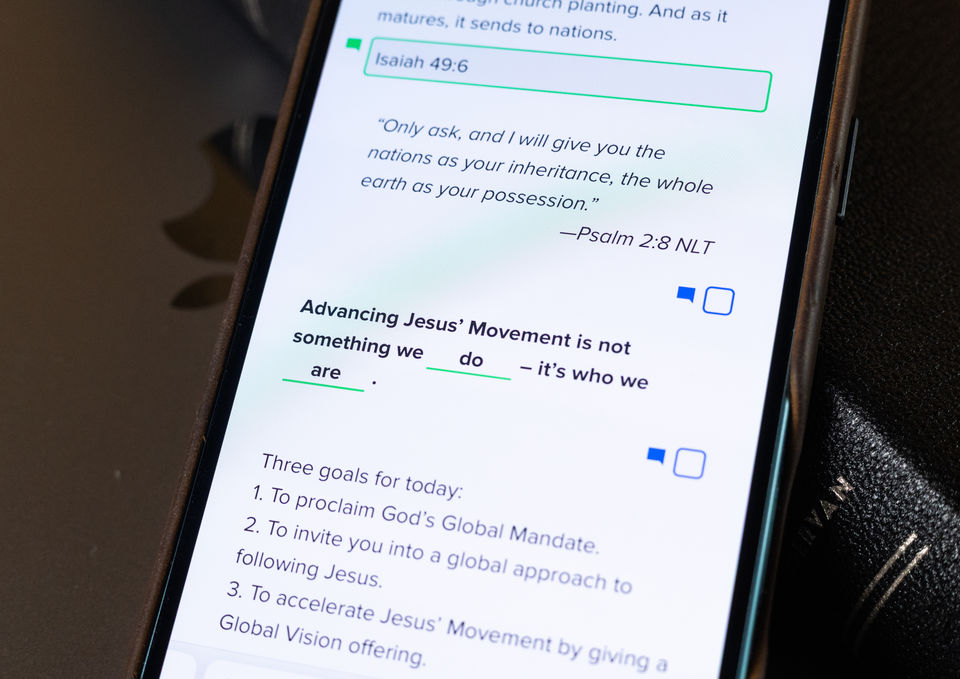 Nuestra aplicación tiene todo, desde videos y audios de nuestros servicios pasados, notas de sermones y planes de lectura de la Biblia hasta eventos, grupos e incluso nuestro servicio en vivo.